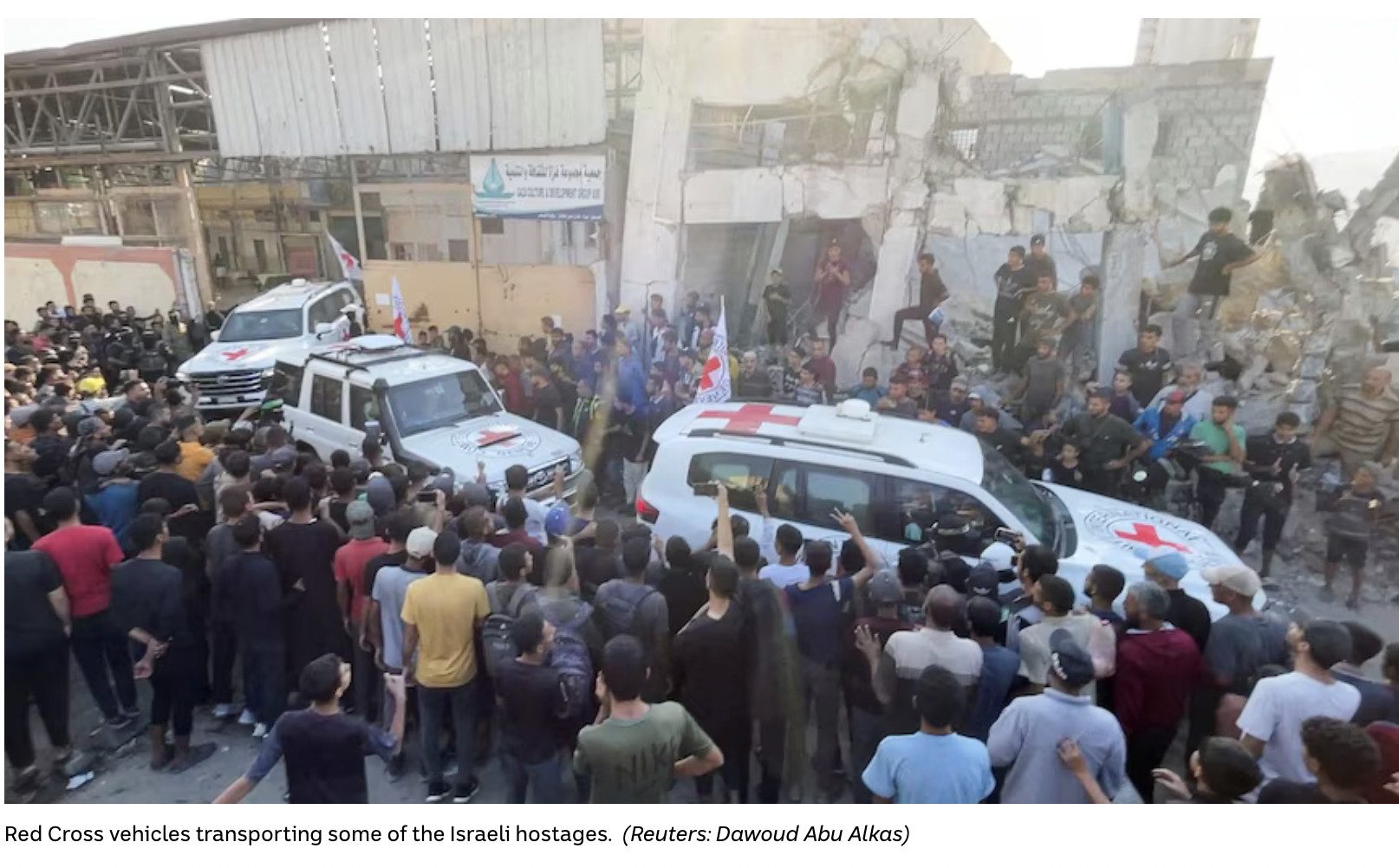 Η Χαμάς παρέδωσε τους πρώτους ομήρους στο πλαίσιο της συμφωνίας κατάπαυσης του πυρός με το Ισραήλ. Την ίδια στιγμή, ο πρόεδρος των ΗΠΑ, Ντόναλντ Τραμπ, ο ρόλος του οποίου στις διαπραγματεύσεις ήταν καθοριστικός, αφίχθη στο Τελ Αβίβ, ενισχύοντας τη διεθνή διπλωματική πίεση για εφαρμογή των συμφωνηθέντων μεταξύ των δύο πλευρών έπειτα από μήνες αδιάκοπης βίας.